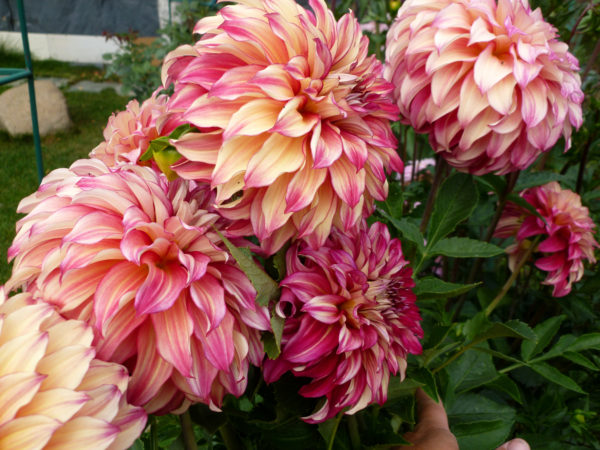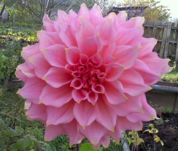 - Milžinai - didžiausios dahlia veislės. Žiedynai, kurių skersmuo siekia 25 cm, tokia didžiulė gėlė daro augalą labai sunkiu, todėl jie sodinami vietose, gerai apsaugotose nuo vėjo.