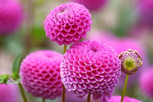 Sferinis ir pompom. Jie turi sferines kilpines gėles nuo 10 iki 15 cm, jos žydi gausiai nuo vasaros pradžios iki vėlyvo rudens.