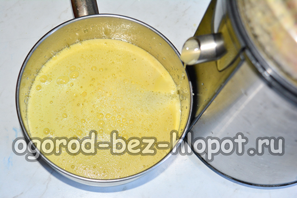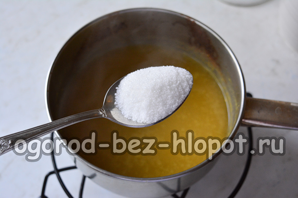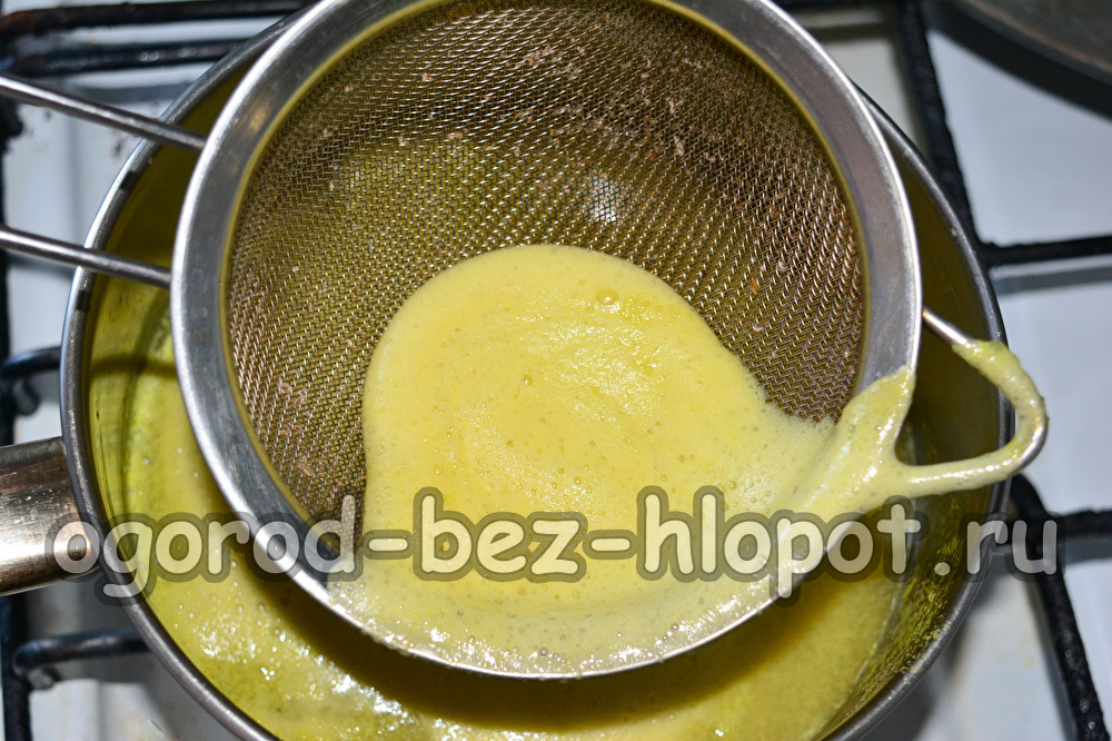 Šviežią supilkite į gilų metalinį indą ir palikite 30–40 minučių, kad putos užsandarintų. Prieš kaitindami, nuimkite. Sultys tamsės, jei norite sulėtinti oksidaciją, įpilkite citrinos rūgšties kristalų. Jei susukote vaisius ant rankinės sulčiaspaudės, neturėsite tokių problemų ir galėsite nedelsdami uždegti. Kadangi putos masės, surinkite ją šaukštu ar metaliniu kamščiu.