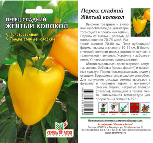 Veislė turi išsiskleidžiantį krūmą su vidutine lapija. Norėdami gauti gerą derlių, turite pašalinti šoninius ūglius ir apatinį lapų sluoksnį. Po to jis gaus puikų stačiakampio-išgaubtos formos ryškiai geltonų vaisių derlių, turintį nuostabų, ryškų skonį ir vidutinį saldumą. Veislė yra vidutinio ankstyvumo, pirmieji vaisiai subręsta po 115 dienų nuo pirmųjų daigų pasirodymo. Vaisiaus ilgis siekia 10–12 cm, vidutinis svoris nuo 150 iki 250 g. Jo vidinės storio sienos yra 6–7 mm, atsižvelgiant į vaisiaus dydį. Veislė tinka bet kokiems kulinariniams poreikiams, pietiniuose regionuose ji auginama atvirame lauke.